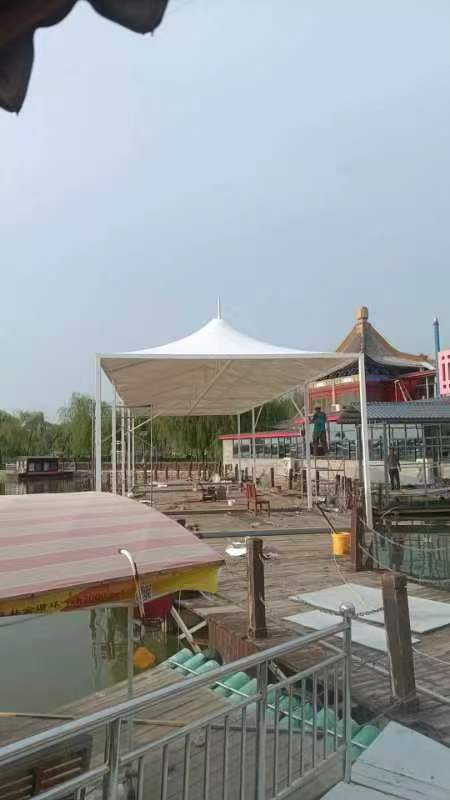 大荔渭南膜結(jié)構(gòu)景觀棚,位于大荔南湖景區(qū),建筑面積約120平方米。